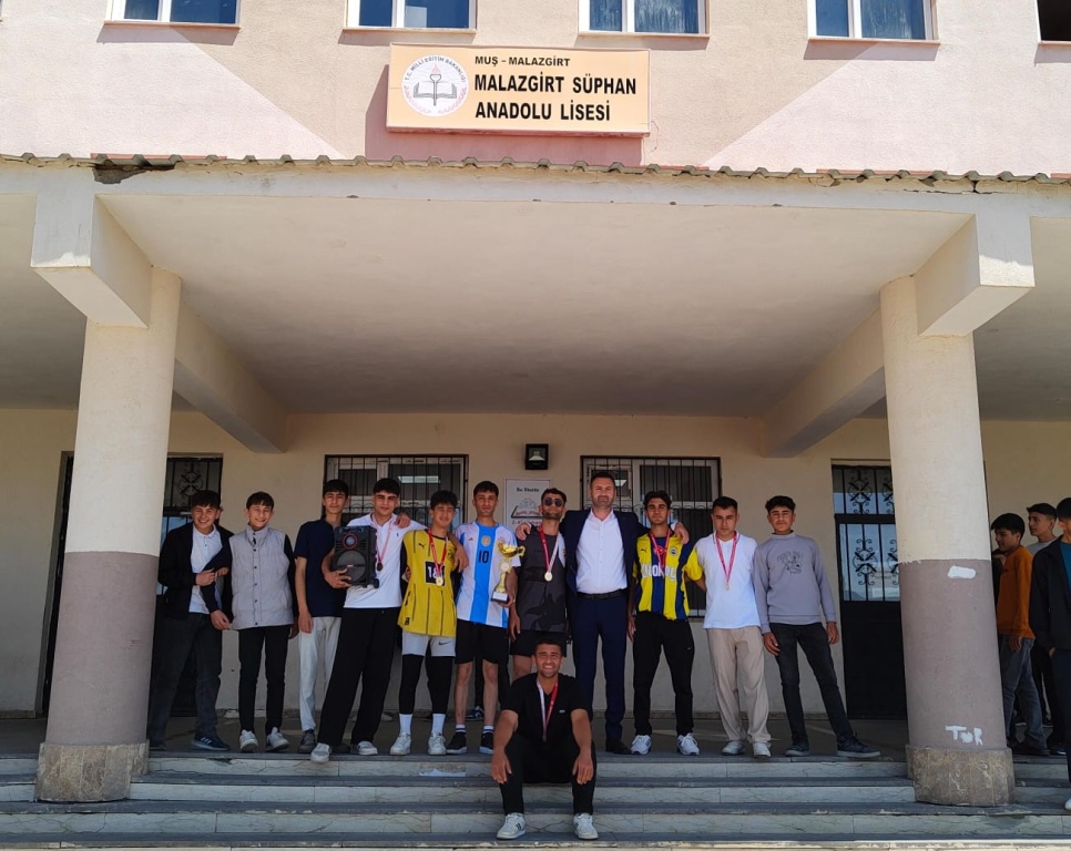 MALAZGİRT LİSELER ARASI OKUL TURNUVASINDA FİNAL MAÇINA ÇIKARAK RAKİBİNİ 6-2 LİK SKORLA YENEREK ŞAMPİYON OLAN OKUL FUTBOL TAKIMIMIZI TEBRİK EDERİZ. OKUL MÜDÜRÜMÜZ SAYIN TUNCAY ÖĞRETENİ VE BEDEN EĞİTİMİ ÖĞRETMENİMİZ SAYIN İHSAN CENGİZİ KUTLARIZ. TURNUVANIN FİNAL MAÇINA GELEREK BİZLERİ ONURLANDIRAN İLÇE MİLLİ EĞİTİM MÜDÜRÜMÜZ SAYIN MUSTAFA TEK'E TEŞEKKÜR EDERİZ.