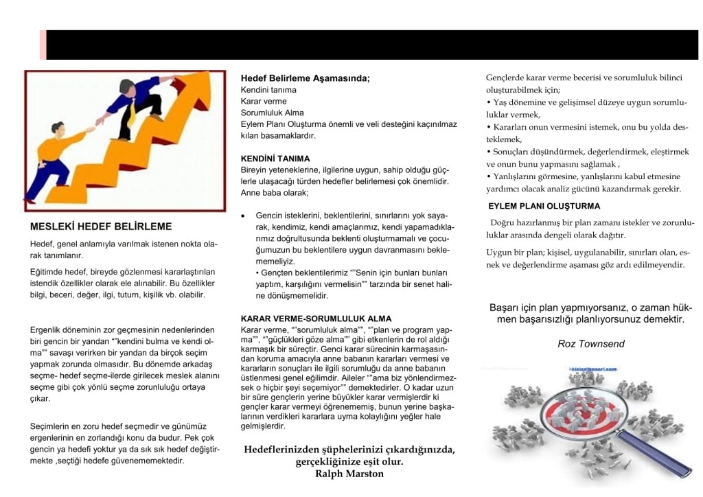 Başarılı insanlar ulaşmak istedikleri hedeflerini açık ve net olarak belirlerler. Hedefe ulaşmak için öğrencilerin bazı kişisel özellikleri göz önünde bulundurulmalıdır. Öğrencilerin farklı kişisel özellikleri hedef oluşturmada kullanılmalıdır. Aşırı stresli ve kaygılı öğrencilerin hedeflerine ulaşmada zorluklar yaşadıkları bulunmuştur. Stres ve kaygı hedefe ulaşmada motive edici olurken, çok fazla olduğu zaman ise, kişinin kapasitesinin altında başarı sergilemesine neden olmaktadır